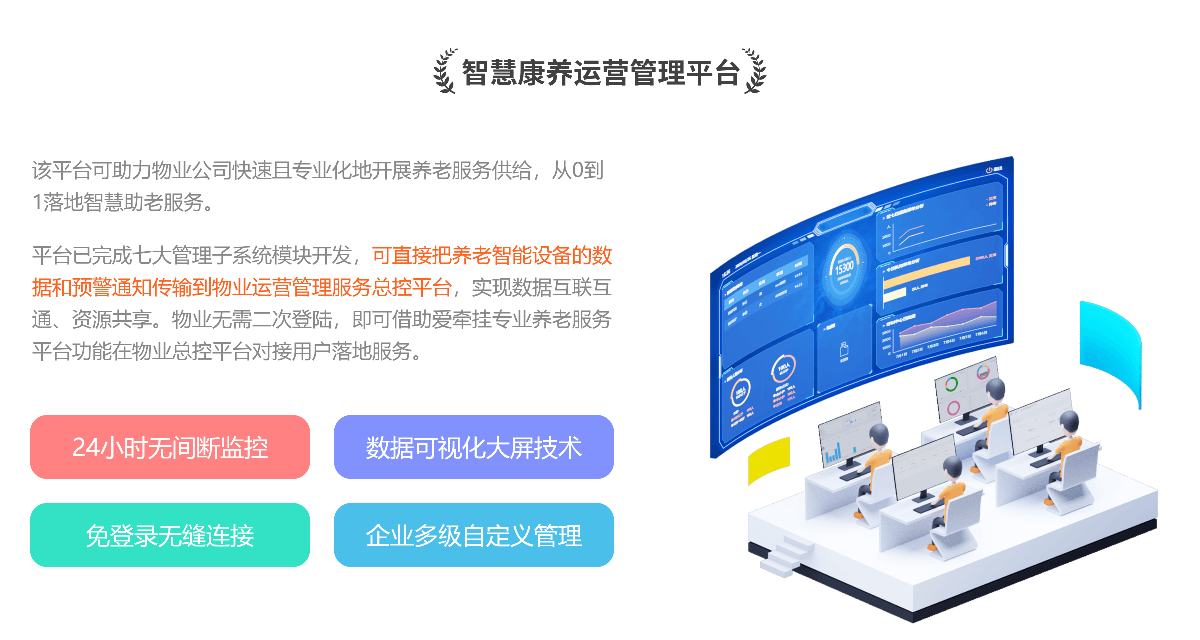 于全国范围内完成2900+成熟建设案例,并与各地多家民政机构达成战略合作,提供可持续的智慧养老相关服务。